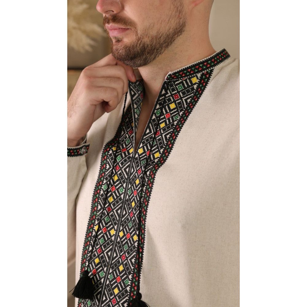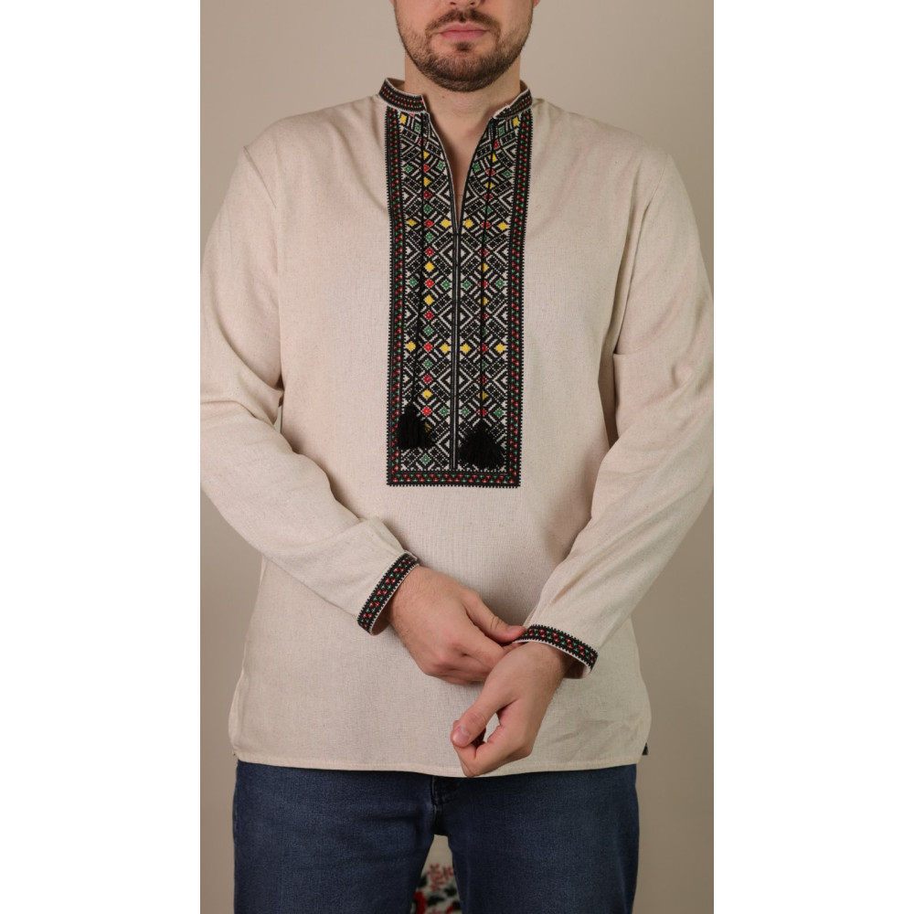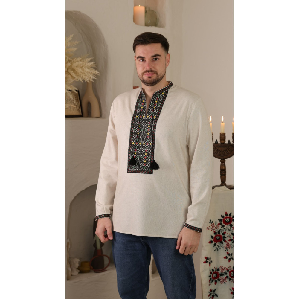 Представляємо елегантну чоловічу вишиванку, що поєднує мінімалістичний, стриманий крій та багате орнаментальне оздоблення. Ця сорочка стане ідеальною основою як для святкового, так і для стильного повсякденного образу.