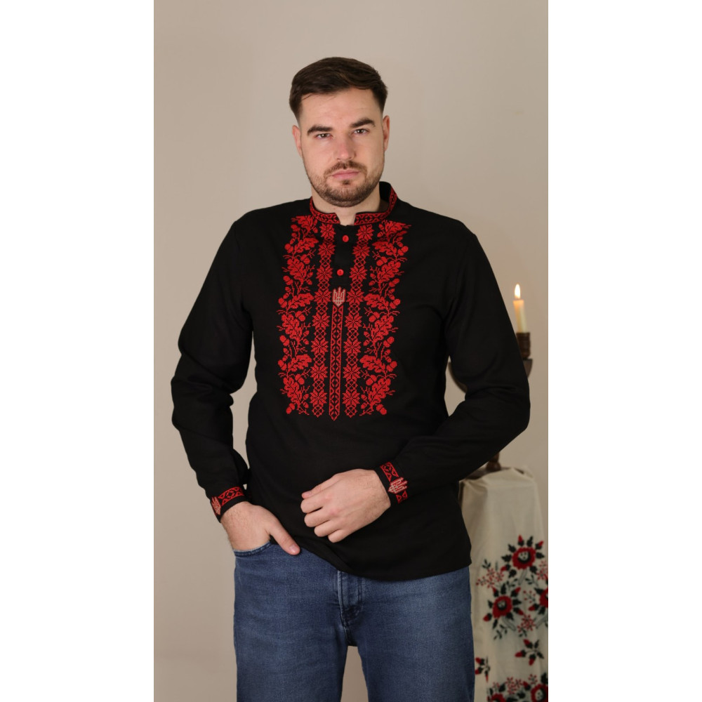 Ця вишиванка поєднує в собі стриманість чорного кольору та пристрасть червоного, створюючи винятковий, мужній та ошатний образ.