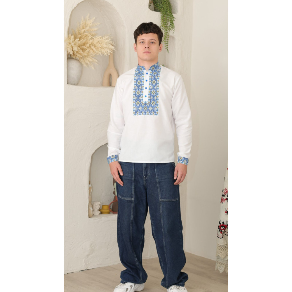 Ця сучасна чоловіча вишиванка поєднує класичні українські традиції та актуальний міський стиль. Вона ідеально підходить для святкових подій, важливих зустрічей або для того, щоб підкреслити свою ідентичність у повсякденному житті.