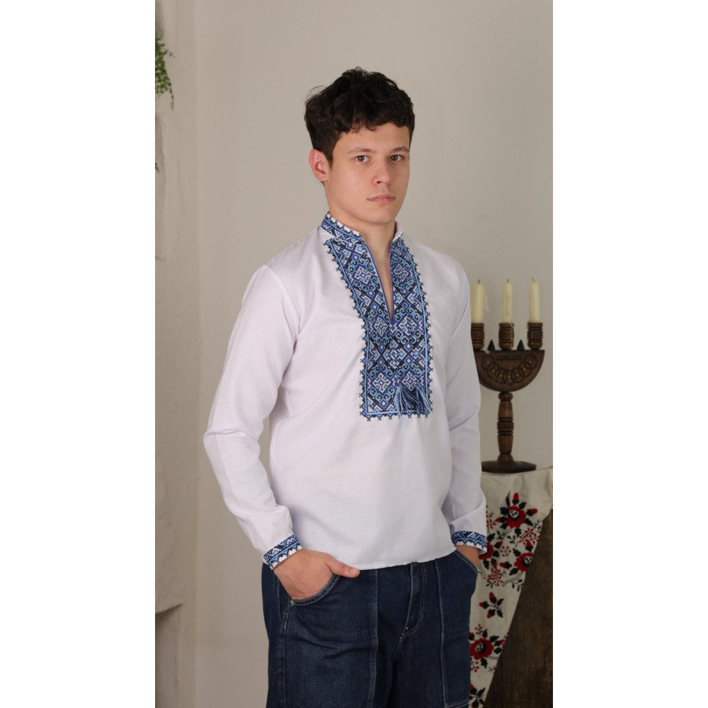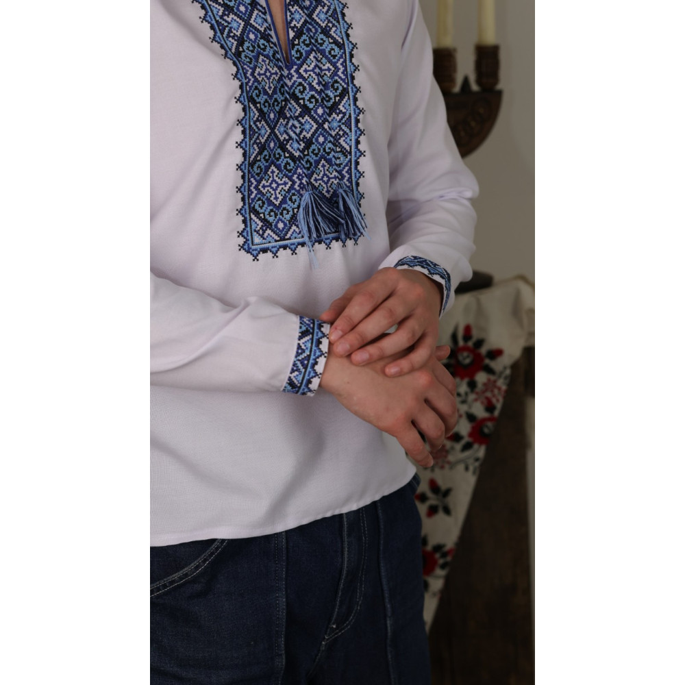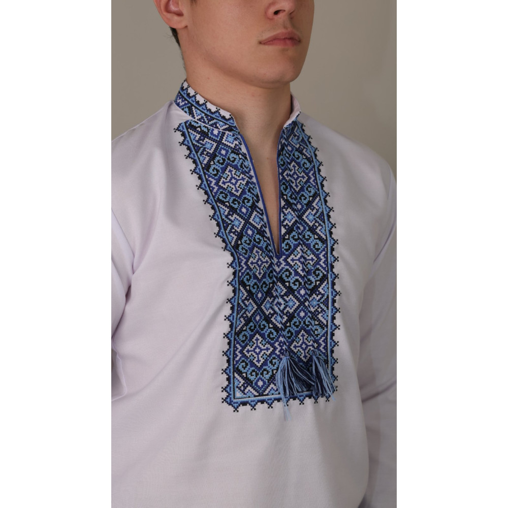 Представляємо елегантну вишиванку, яка поєднує в собі українські традиції та сучасний комфорт. Ця модель у класичному білому кольорі з насиченим синьо-блакитним орнаментом ідеально підійде для шкільних свят, урочистих подій, фотосесій або просто для стильного патріотичного образу на кожен день.