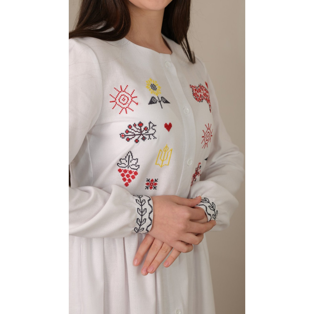 Ця сукня — втілення національної гордості та стилю. Вона чудово виглядає як із кедами, так і з класичним взуттям, дозволяючи легко змінювати образ. Це модний та практичний подарунок, що наповнений змістом.