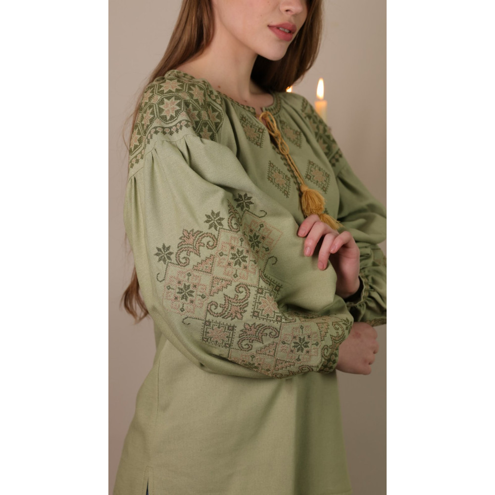 Дизайн: Унікальний хрестиковий орнамент виконаний у гармонійних відтінках зеленого та пісочного кольорів, що імітує старовинні українські візерунки.