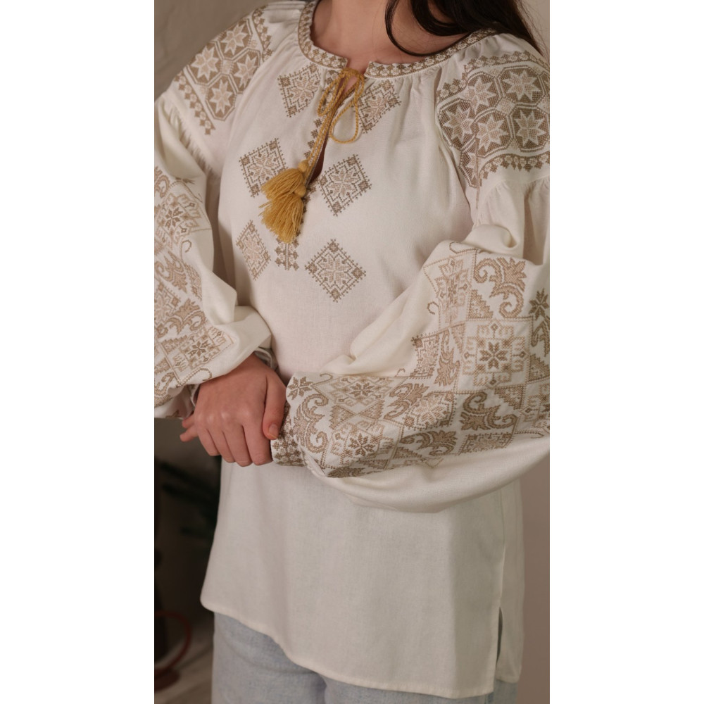 Класика та вишуканість! Ця вишиванка поєднує натуральний світлий тон тканини з делікатною монохромною вишивкою. Вона ідеально підходить для створення м'якого, інтелігентного та водночас етнічного образу.