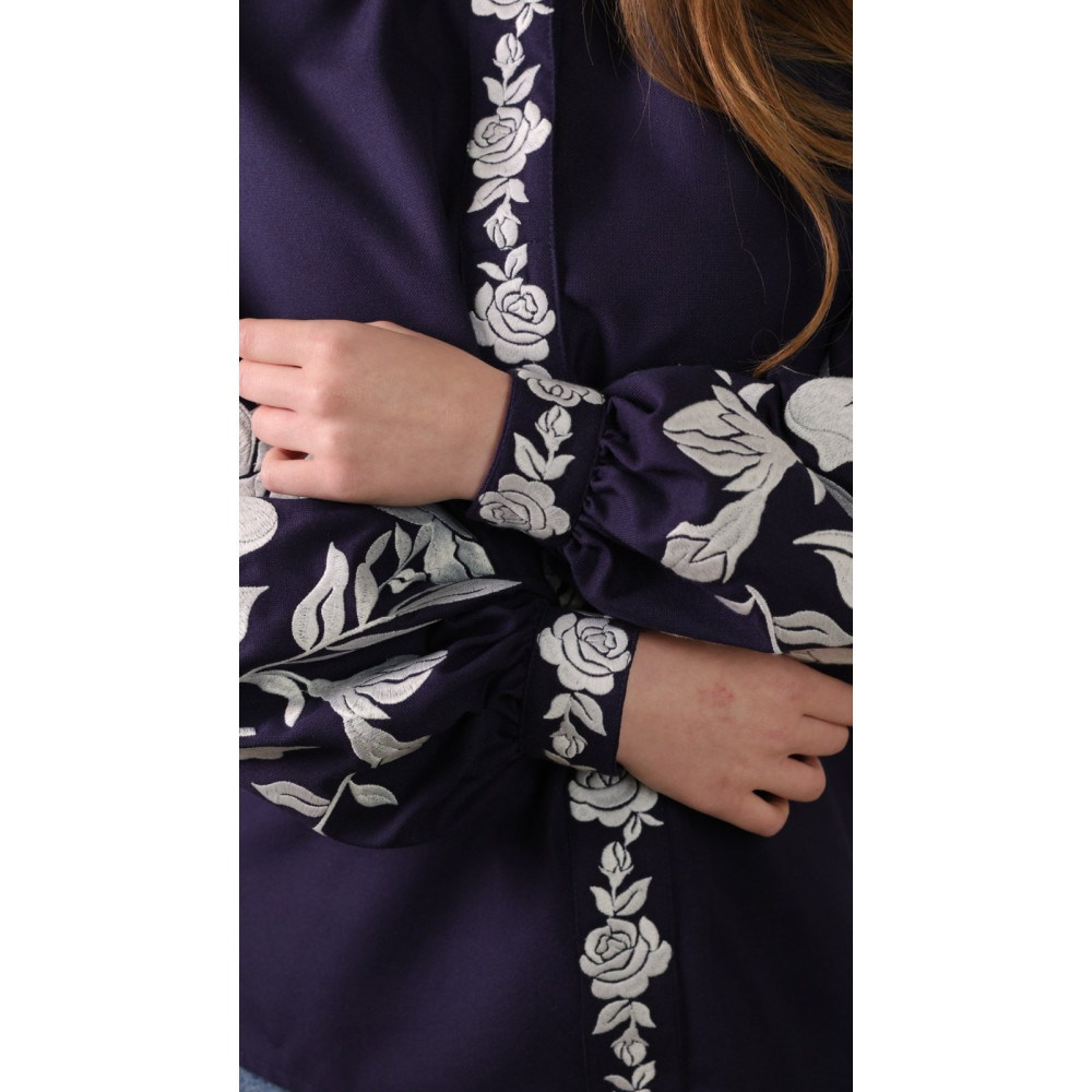 Поєднання строгості та романтики! Ця блуза — ідеальний вибір для тих, хто цінує глибокі насичені кольори та вишуканий квітковий орнамент. Створена, щоб привертати погляди.
