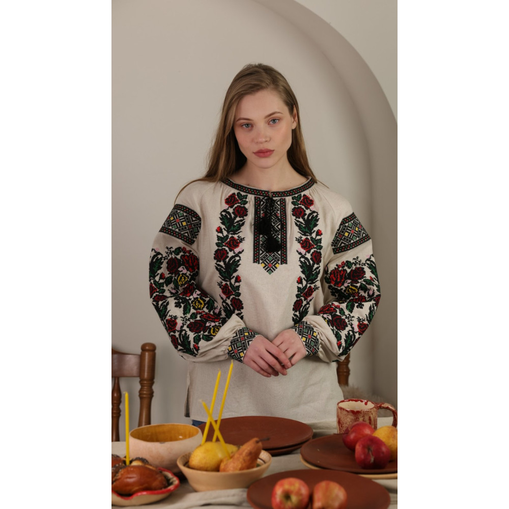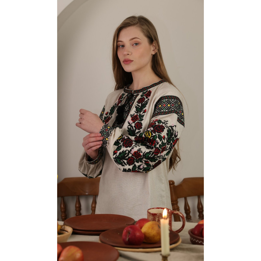 Ця вишиванка – втілення ніжності та традиційної розкоші. Вона створена для жінок, які цінують природні тканини та виразні етно-акценти у своєму гардеробі. Ідеальна для свят, сімейних урочистостей та стильних повсякденних образів.